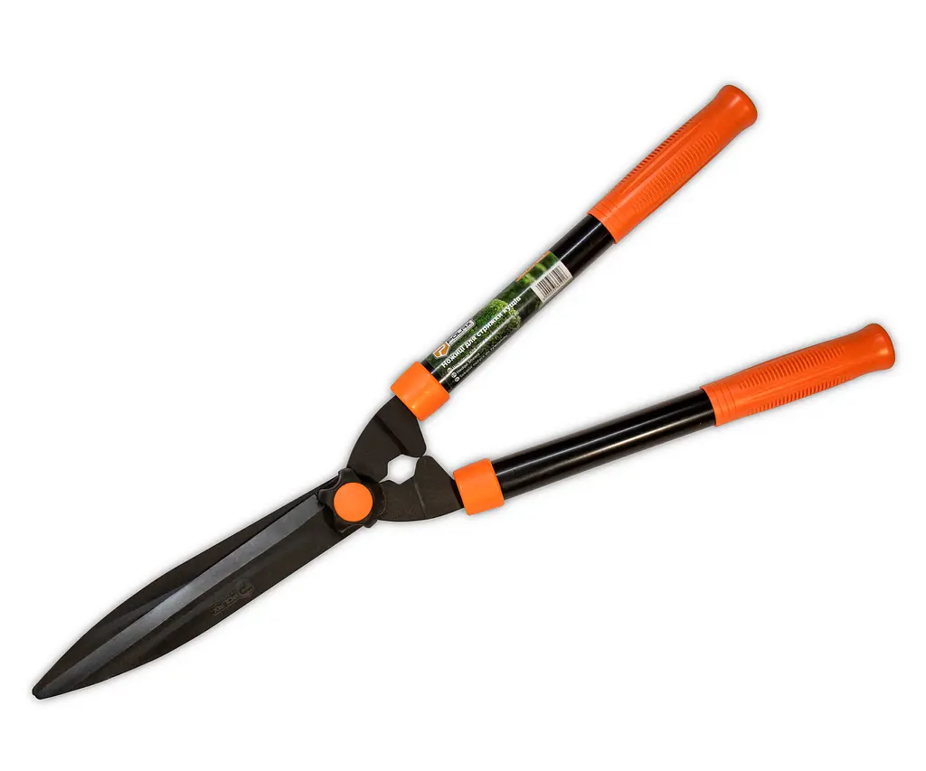 Ножиці для стрижки кущів 550 мм Polax (70-024) Приведіть свою зелену зону до ладу за допомогою надійних ножиць для стрижки кущів Polax. Наша модель 550 мм (70-024) призначена для ефективної роботи в саду, забезпечуючи високу точність і комфорт у використанні. Характеристики: Матеріал леза: Міцна сталь 55HRC для довговічності та ефективної роботи. Матеріал ручок: Сталеві ручки з пластиковими накладками забезпечують зручність і надійне захоплення. Довжина інструменту: 550 мм для досягнення більшого радіуса обрізки. Довжина леза: 210 мм, що забезпечує оптимальну довжину для точної стрижки. Вага інструменту: Легкі 832 грами для комфортної роботи без втоми. Тип леза: Пряме, забезпечує чистий і акуратний зріз. Чому варто використовувати садові ножиці для кущів? Садові ножиці для кущів - це необхідний інструмент для тих, хто прагне до ідеально підтримуваного саду або ландшафту. Вони забезпечують точний і акуратний зріз рослин, даючи вам змогу легко контролювати форму і ріст ваших чагарників. Що можна робити з садовими ножицями для кущів? Стрижка кущів і чагарників: Створюйте доглянуті і красиві форми рослин, підтримуючи здоровий ріст. Формування газонів: Використовуйте ножиці для точної стрижки газонів і обрізки трави у важкодоступних місцях. Догляд за квітниками: Підтримуйте чистоту і порядок у квіткових клумбах, обрізаючи відцвілі квіти і зайві гілки. Виберіть надійні ножиці для стрижки кущів Polax 550 мм (70-024) і насолоджуйтеся легкістю та результативністю в садівництві!