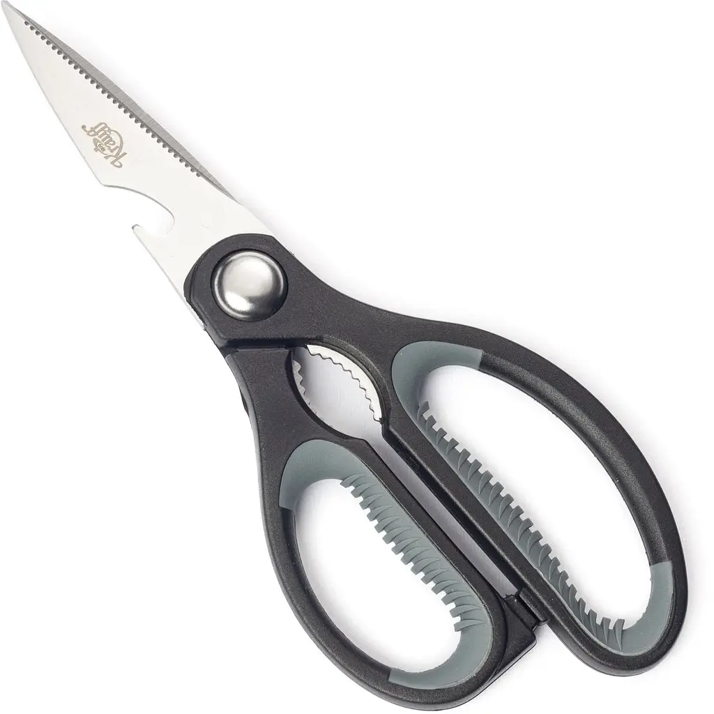Незамінний помічник на кухні - це багатофункціональні ножиці. Саме ці обрала з певною довірою до бренду і залишилась задоволена. Гострі, мають амортизуючий рельєф в середині вушок для запобігання висковзання з рук. також мають відкривашку для пляшок з металевими кришечками та зубці для колки грецьких горіхів. Постійно використовую на кухні ще як мінімум тому. що багато пакуваннь зараз потребують розрізання.