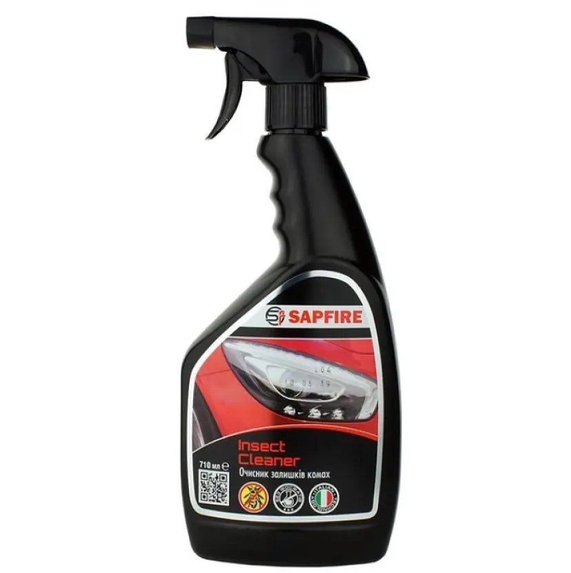 Очищувач плям від комах Sapfire Profi Line забезпечує дбайливий та ефективний догляд за поверхнями автомобіля.