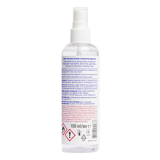 Рівномірно розпилити невелику кількість засобу на будь-який екран. Очистити поверхню бавовняною серветкою або мікрофіброю.