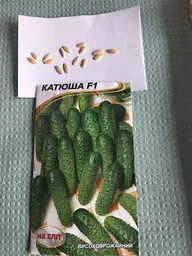 Насіння огірків НК Еліт Катюша F1, 15 шт (75606) – ранньостиглий гібрид. Період від сходів до стиглості 41-43 дні. Плоди циліндричної форми, корнішонного типу, масою 75-100 г, довжиною 11-13 см (середньоплідний), хрусткі, генетично без гіркоти. М'якоть соковита, щільна, відмінного смаку. Гібрид високоврожайний (4.6-6.4 кг/м²), короткоплетистий, переважно жіночого типу цвітіння, пучкове плодоношення (2-3 плоди з вузла), рівномірний за формою і розміром. Рекомендується для вирощування у відкритому ґрунті та в теплицях. Час посіву в ґрунт: середина травня – початок червня (або через розсаду в квітні). Без ГМО. Це саме той гібрид, який дає рясний урожай ідеальних хрустких корнішонів – найкращі для свіжих салатів, засолки та всіх видів консервування.