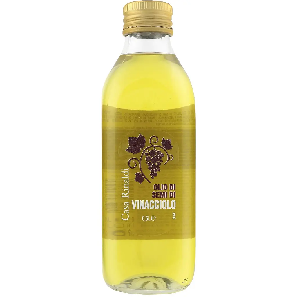 Олія Casa Rinaldi з виноградних кісточок - це унікальний італійський фермерський продукт, що має багато корисних властивостей. Олія з виноградних кісточок Casa Rinaldi виготовляється з винограду, вирощеного в італійській провінції Модена. Даний продукт виготовляється методом віджиму кісточок винограду, які залишаються від виробництва вина та соку. Олія з виноградних кісточок не має вираженого аромату, смак олії трохи солодкуватий з винними нотками.