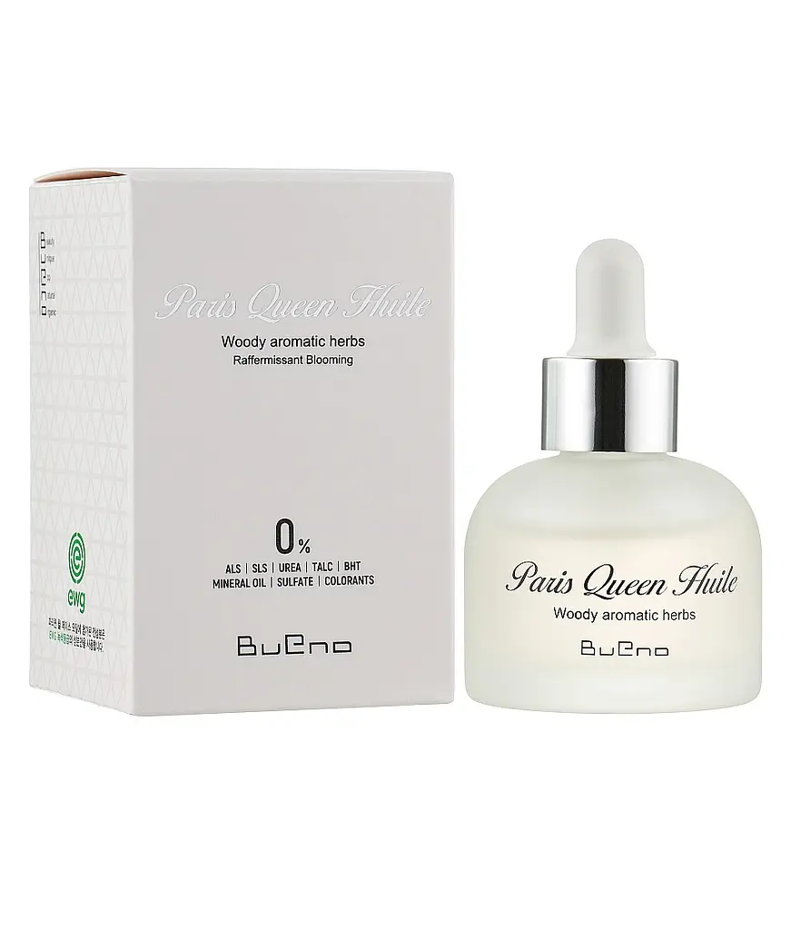 Занурте свою шкіру в ароматну шовкову хмару! Ніжна живильна олія Bueno Paris Queen Huile призначена для глибокого зволоження, живлення, пом'якшення та омолодження шкіри обличчя. Оксамитовий засіб, що швидко вбирається, заснований на комплексі цінних натуральних олій, які сертифіковані компанією EWG, що гарантує відмінну якість і безпеку для шкіри. Олія підвищує еластичність та пружність епідермісу, зменшує зморшки та усуває сухість.