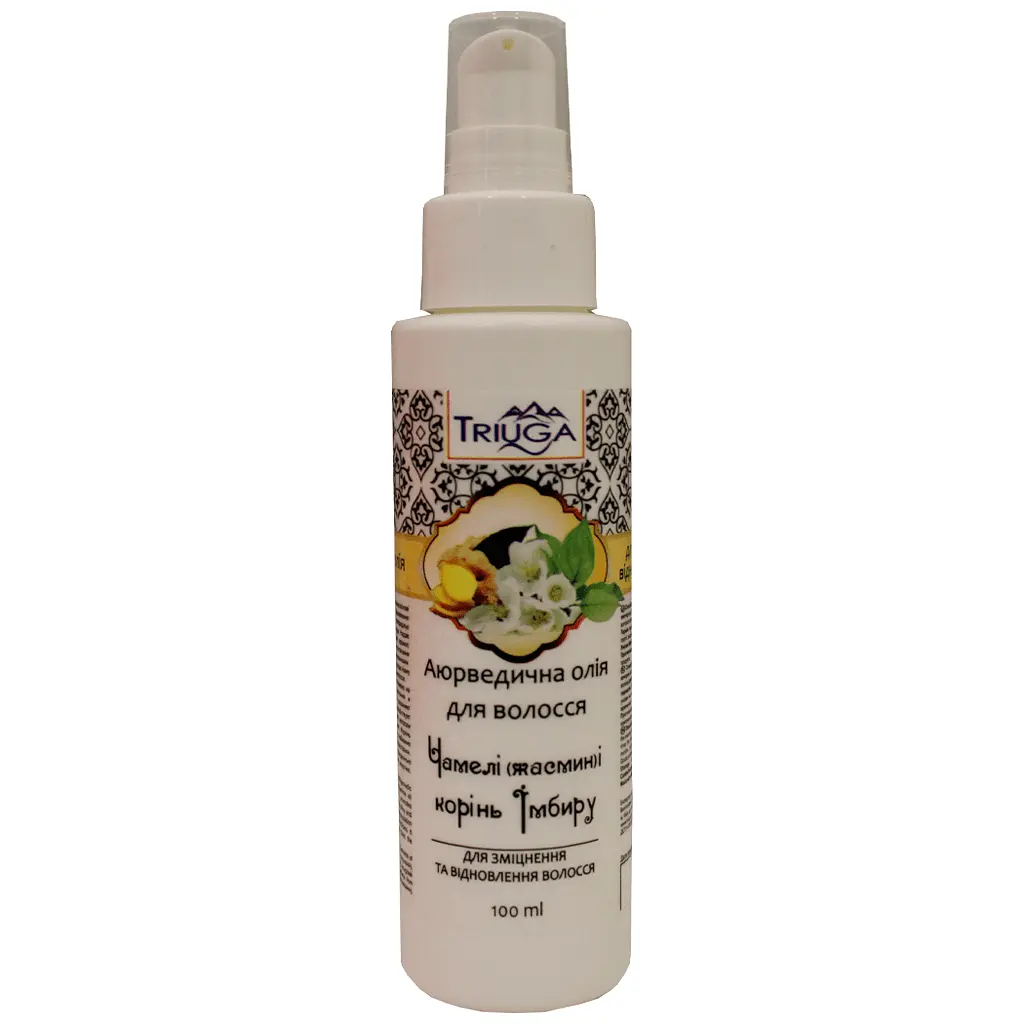 Олія для волосся Triuga Чамелі (жасмин) та корінь імбиру − натуральний аюрведичний продукт, який поєднує живильні властивості олії жасмину та стимулюючі властивості кореня імбиру.
