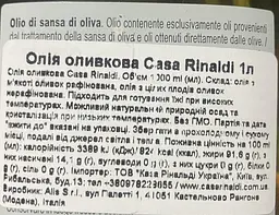 Оливкова олія Casa Rinaldi для смаження виготовлена відповідно до найкращих традицій італійського фермерства. Таку олію отримують методом другого холодного віджиму за допомогою обробки макухи оливок, що залишилася після виробництва олії Extra Vergine. Така олія ідеально підходить для смаження та інших видів термічної обробки продуктів. Оливкова олія має низьку кислотність, завдяки чому вона може зберігатися тривалий час, не втрачаючи якості, а також не горить і не гірчить під дією високих температур.