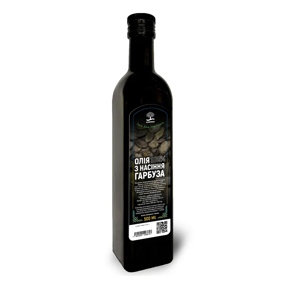 Гарбузова олія — це справжня «аптека в одній пляшці». Завдяки методу холодного пресування ми зберігаємо всі біологічно активні речовини, вітаміни та мікроелементи, створені самою природою. Олія має насичений темно-зелений колір (іноді з рубіновим відтінком) та вишуканий горіховий аромат.