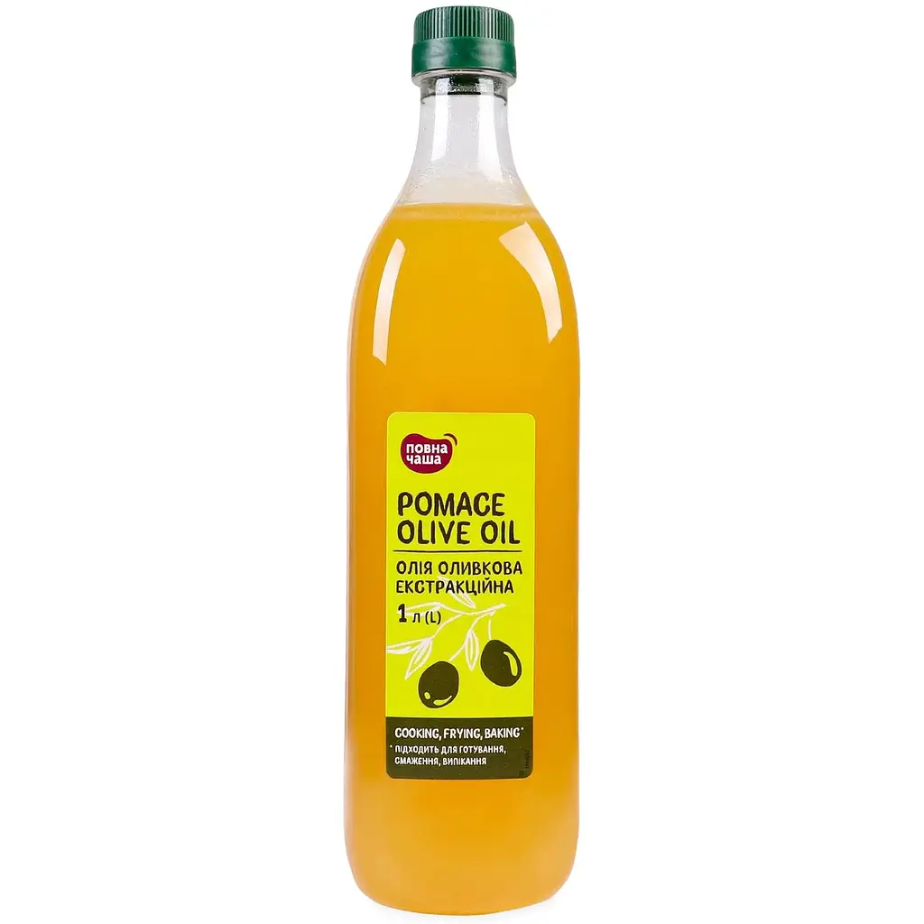 Оливкова олія Повна Чаша - це суміш олій оливковкових рафінованого екстракційного та першого віджиму.