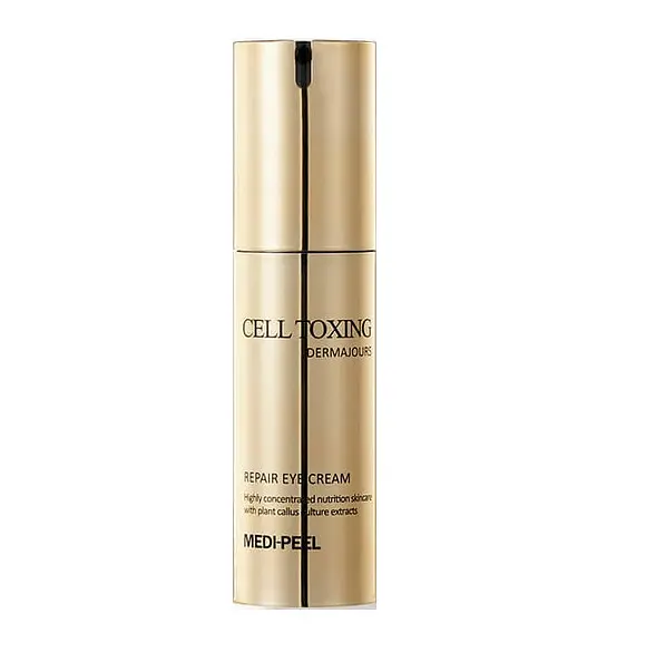 Крем для очей преміумкласу, має потужний склад та забезпечує еластичність шкіри. Зміцнює шкірний бар'єр і розгладжує зморшки, надає пружності. Живить і зволожує, відновлюючи оптимальний гідробаланс і перешкоджає пересиханню шкіри. Заспокоює шкіру та допомагає звести до мінімуму ознаки втоми. Завдяки ліпосомному методу транспортування активи засобу доставляються точно і швидко. Має насичену кремову текстуру, яка м'яко розподіляється та швидко вбирається у шкіру без липкості, наповнюючи область навколо очей життєвою силою та енергією. З Medi-peel Cell Toxing Dermajours Repair Eye Cream шкіра навколо очей буде пружною та бархатистою без слідів втоми.