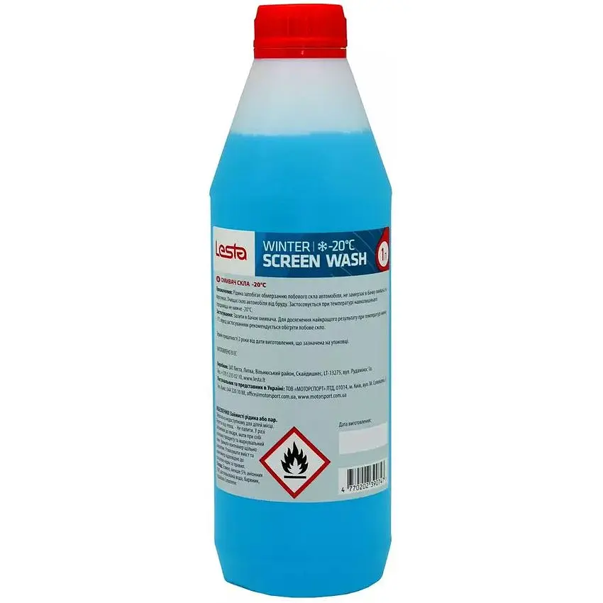 Омивач скла зимовий Lesta Winter screen wash -20°С готовий для застосування в системах автомобіля в холодну пору року. Призначений для ефективного очищення скла та фар головного світла від снігу, дорожніх протиожеледних засобів, солі, сажі, бруду та багатьох інших завдяки спеціальним активним мийних речовинам. Знижує тертя двірників про лобове скло та гарантує їх плавне ковзання, зменшуючи знос та продовжуючи термін служби. Також надійно захищає гумки склоочисників та ущільнювачі лобового скла від промерзання та розтріскування. Самостійно висихає, забезпечуючи виняткову чистоту та прозорість скла для комфортного та безпечного пересування на автомобілі. Універсально підходить для легкового та вантажного автотранспорту, а також автобусів, будівельної та спецтехніки.