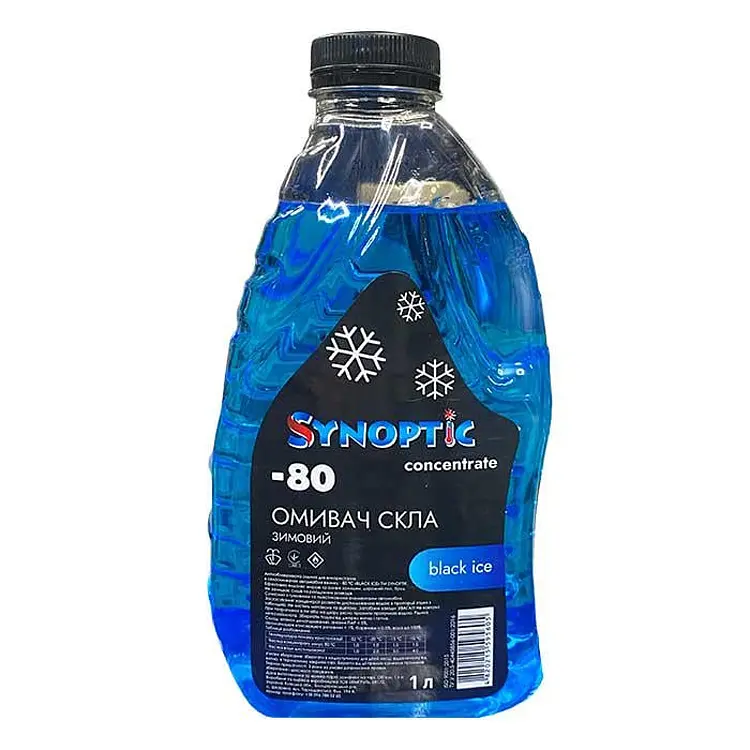Омивач скла Synoptic Чорний Лід – це антиобмерзаюча рідина для склоомивачів автомобіля в холодну пору, що ефективно видаляє жирові та оливні залишки, дорожній пил, бруд без слідів чи райдужних розводів. Концентрат розводиться з дистильованою водою для отримання потрібної температури замерзання, сумісний з гумовими та пластиковими елементами, не містить метанолу чи ацетону для безпеки та екологічності.