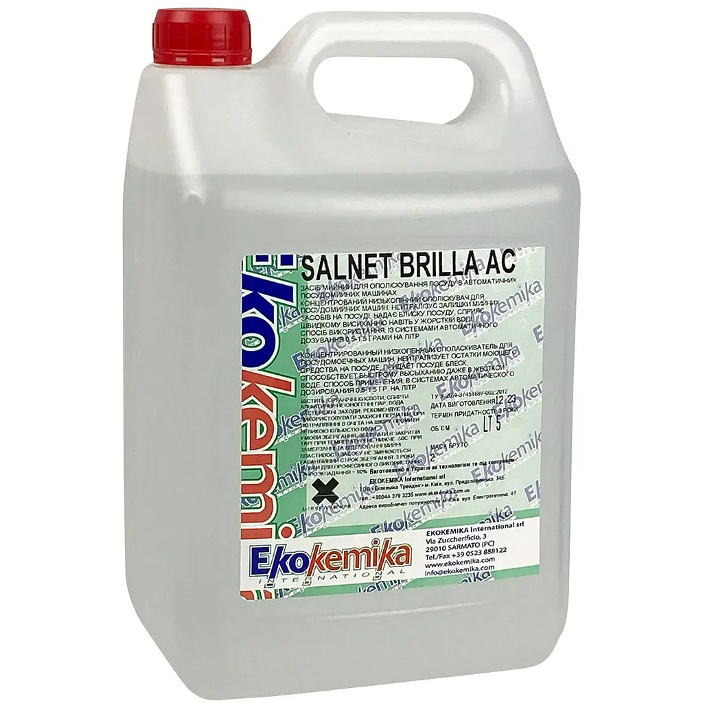 Концентрований низькопінний ополіскувач для посудомийних машин Ekokemika Salnet Brilla Ac нейтралізує залишки миючого засобу на посуді, надає посуду блиску, сприяє швидкому висиханню навіть у жорсткій воді.