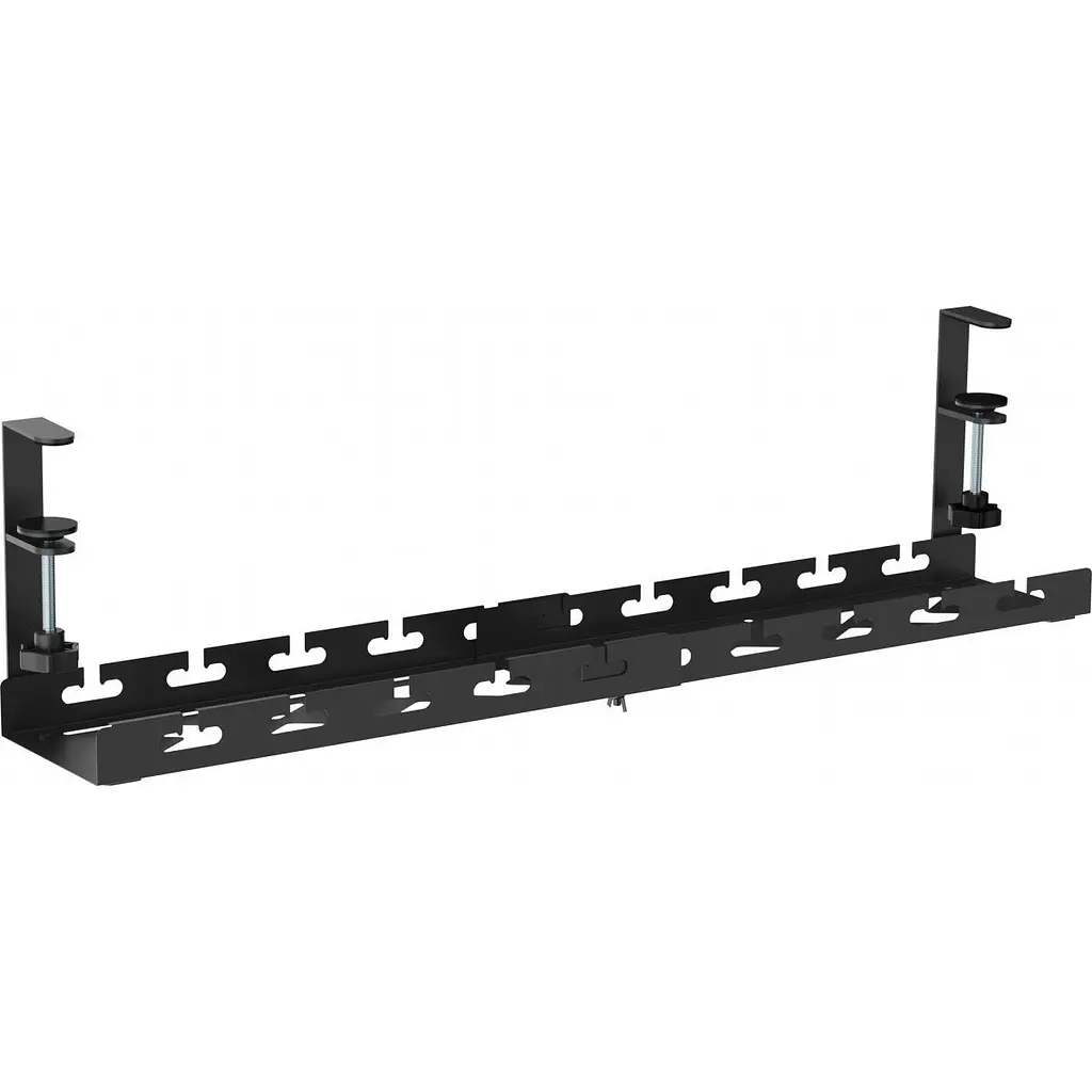 Завдяки універсальному дизайну органайзер підходить для різних розмірів столів. Він легко встановлюється за допомогою міцних затискачів, що входять до комплекту, і може вміщувати різноманітні кабелі та аксесуари.