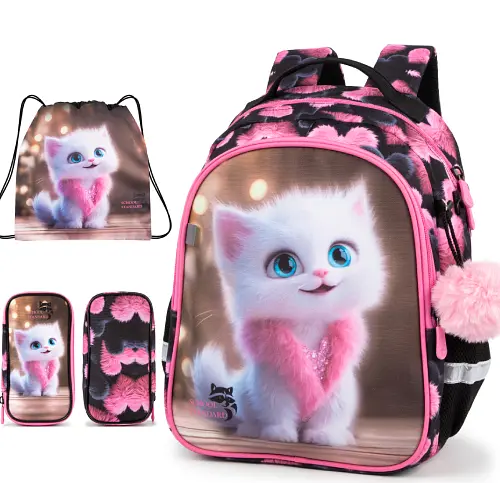 Ортопедичний шкільний рюкзак 3 в 1 з пеналом та мішком для дівчинки School Standard для початкової школи (Full 160-22) Зручний шкільний рюкзак School Standard (СкулСтандард) з анатомічною спинкою та брелоком-ведмедиком у подарунок - просто знахідка для дівчаток. Це ідеальний вибір для початкової школи, розмір 38х16х28 см . Спинка повністю вентильована, прошита м'якими вставками, що дихають. При максимальному навантаженні шкільний аксесуар не змінює форму. Ергономічні лямки-мийки рюкзака для молодших класів з регульованим нагрудним ременем та застібкою фастекс. Лямки щільні з додатковими вставками з внутрішньої сторони. Довжину можна регулювати. Рюкзак для школярів виконаний із водовідштовхувальної тканини для захисту вмісту від вологи та дощу.
