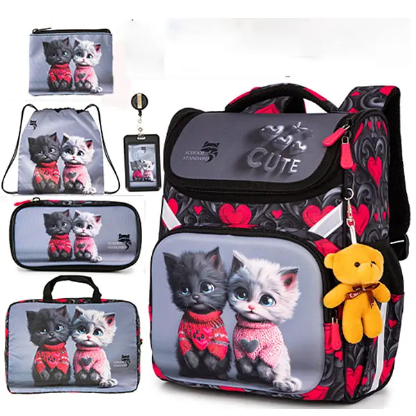 Ортопедичний шкільний рюкзак (ранець) 6 в 1 для дівчинки School Standard з Котом 34х26х14 см для молодших класів (350-102)