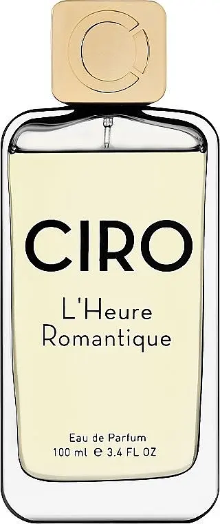 L'Heure Romantique Parfums Ciro (Льор Романтік Парфюм Сіро) - Очі зустрічаються, погляди обмінюються, дві людини стають одним цілим в такі моменти, які, здається, тривають вічно... про завтрашній день. Фруктово-оксамитова дамаська троянда, шовковисто-чиста конвалія, пудровий ірис і бархатистий цикламен доповнюють цей квітковий натюрморт. Стиглий кавун і терпко-соковитий грейпфрут створюють динамічну атмосферу оптимізму та надають фруктової свіжості. Ніжні квіти орхідеї з чудово м'якою бурбонською ваніллю, що енергійно підтримується мускусом, надають аромату тонкий, злегка солодкуватий відтінок. Створює динамічну атмосферу оптимізму та надає фруктової свіжості.