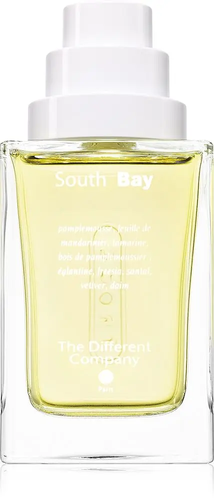 Емілі Беп'єр — парфумерка, яка вміє філігранно працювати з природними матеріалами, створила South Bay для французького дому The Different Company. Аромат входить до колекції L'Esprit Cologne і є ольфакторною присвятою сонячному Маямі та його славнозвісному району Саут-Біч. Це інтерпретація класичного колоню в стилі "нео-шик": яскрава, енергійна, але з глибоким деревним підтоном, що робить аромат стійким та об'ємним.
