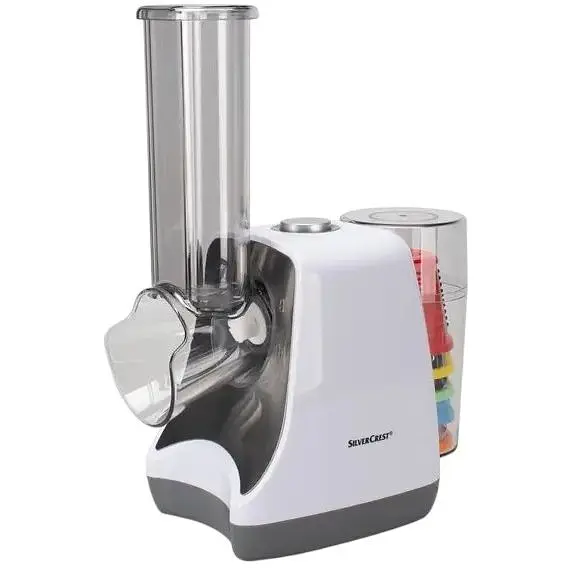 Овочерізка електрична терка SilverCrest SGR 150 E2 допоможе вам зекономити час і зусилля при приготуванні страв, позбавляючи від необхідності виконувати механічну роботу на кухні. Всі насадки зберігаються прямо в корпусі пристрою, а натерті продукти потрапляють одразу в чашу, забезпечуючи порядок на кухні.