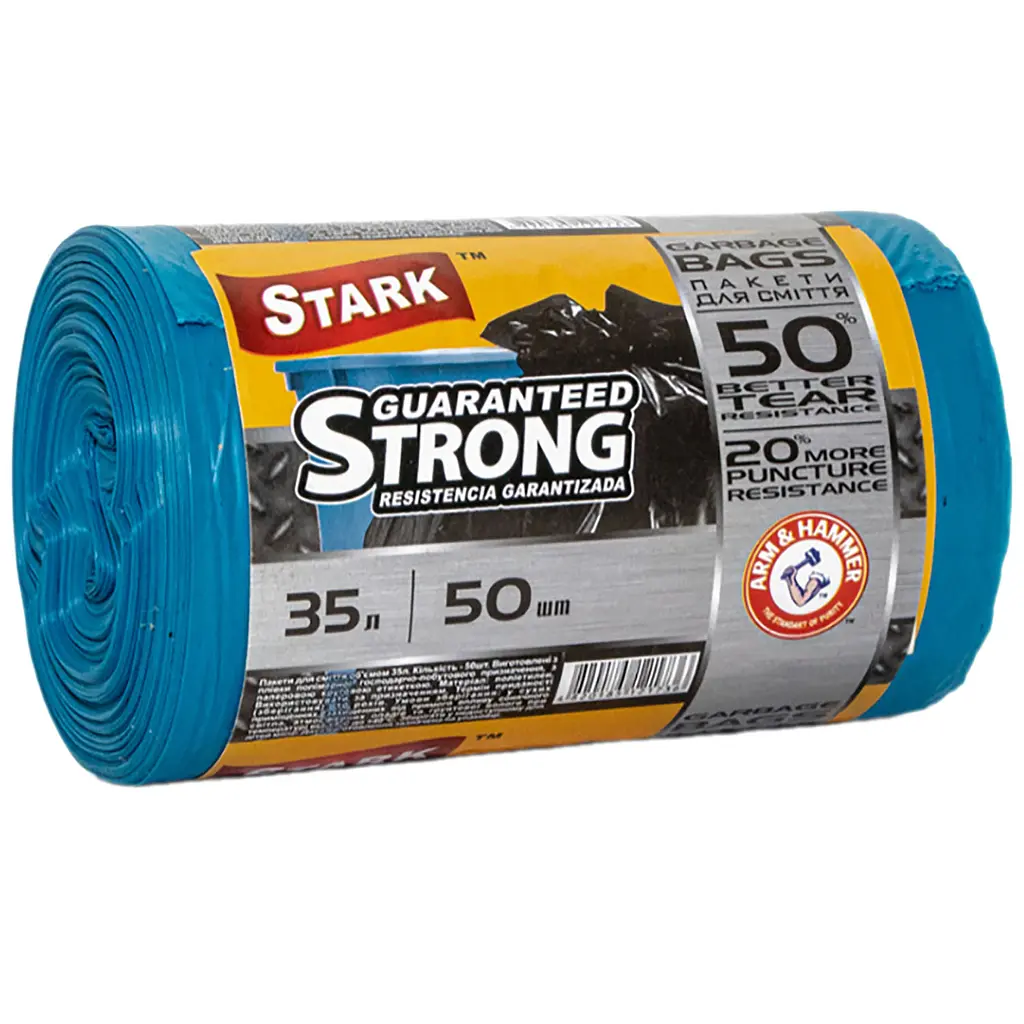 Перепробувала вже дуже багато різних недорогих пакетів для сміття і вирішила купити міцні пакети Stark. Виявилися дійсно міцними. Сировини для виготовлення не пожаліли. Як береш у руки упаковку, то одразу відчуваєш її вагу. Повний пакет сміття і навіть не думає розлазитися по дорозі до сміттєвого баку. Звичайно, ручок у пакетів не має, це мінус. Але за таку ціну їх не знайти навіть у менш міцних пакетів. Колір веселенький, а не нудний чорний. Буду брати ще.