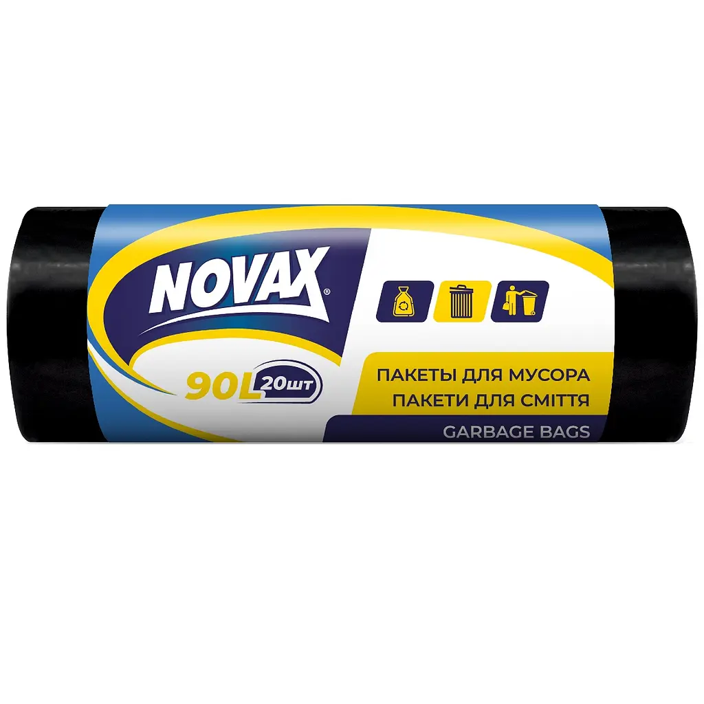 Пакети для сміття Novax - надміцні, відмінно підходять для великих баків для сміття.