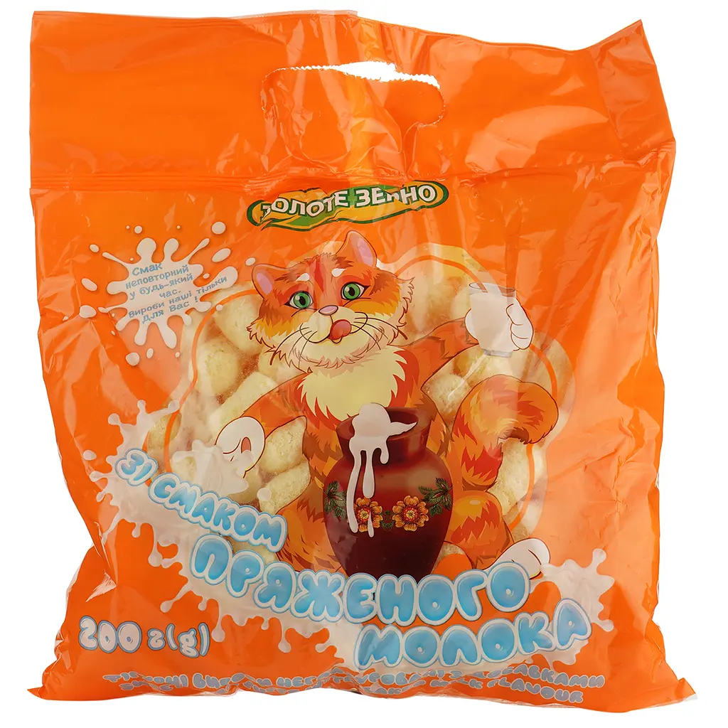 Палички кукурудзяні «Золоте Зерно» з пряженим молоком 200 г — це легкий солодкий перекус із м’яким молочним смаком. Текстура повітряна, палички рівномірно хрусткі та не надто липкі, що робить їх зручними для щоденного вживання. Аромат пряженого молока добре відчутний, але не нав’язливий, смак збалансований і не перенасичений цукром. Упаковка достатньо велика, а якість продукту стабільна до кінця, тому підходить як для дітей, так і для дорослих, які люблять легкі кукурудзяні снеки.