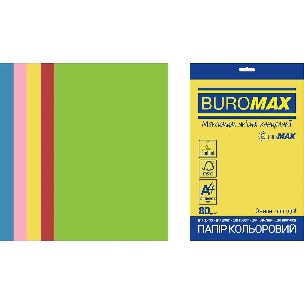 Набір кольорового паперу Buromax Euromax - для життя, для роботи, для навчання, для творчості, для дому.