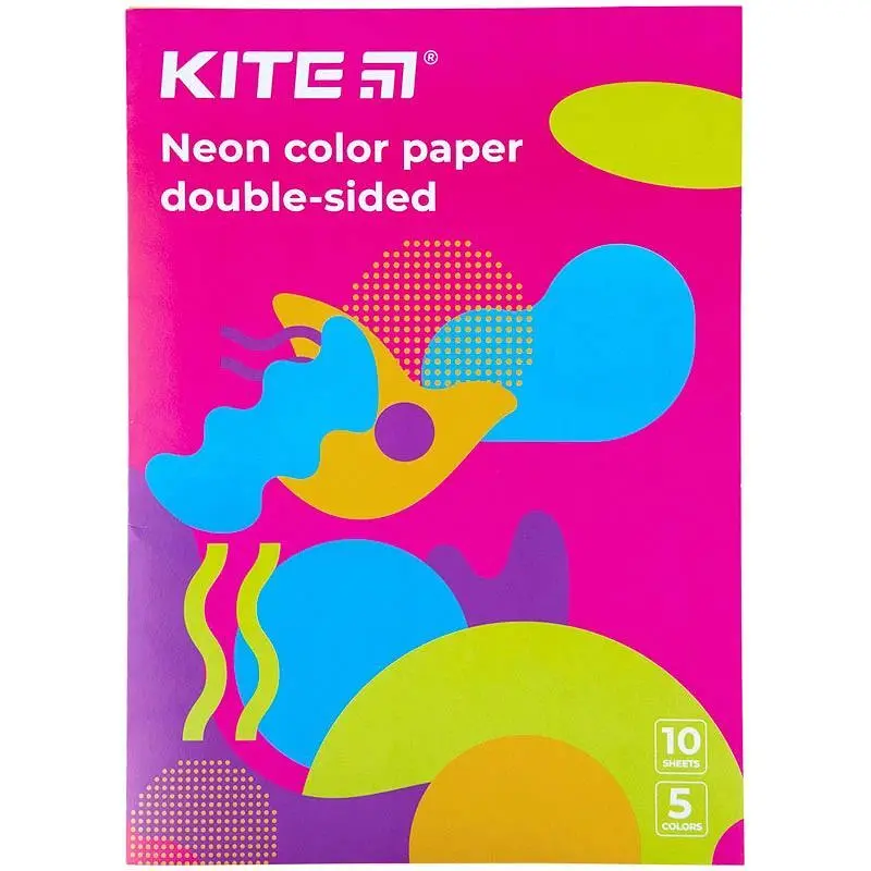 Набір кольорового паперу Kite допоможе втілити безліч креативних задумів, а неоновий відтінок додасть оригінальності композиції. Щільний та яскравий з двох сторін папір відмінно підходить для створення кольорових аплікацій та листівок, а також для об'ємних виробів, де проглядаються дві сторони деталей.