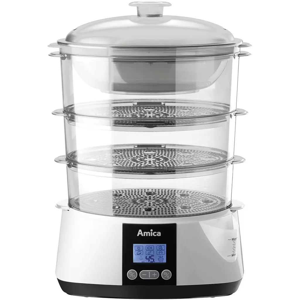 Пароварка Amica PT 3012 - компактний та зручний прилад для тих, хто цінує здорове харчування та швидке приготування страв без зайвого жиру й олії.