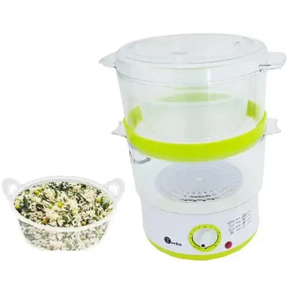 З пароваркою Turbo TV-1205W як ніколи просто дотримуватись режиму здорового харчування.Вона дозволить готувати смачні, корисні та поживні страви швидко та без проблем.Характеристики:Тип: пароваркаВид: електричнаТип керування: поворотний перемикачМатеріал: пластикПотужність: 400-1200 ВтОб'єм: 6 лКількість рівнів: 3Зручність зберіганняДуже легко мити та чиститиКолір білий