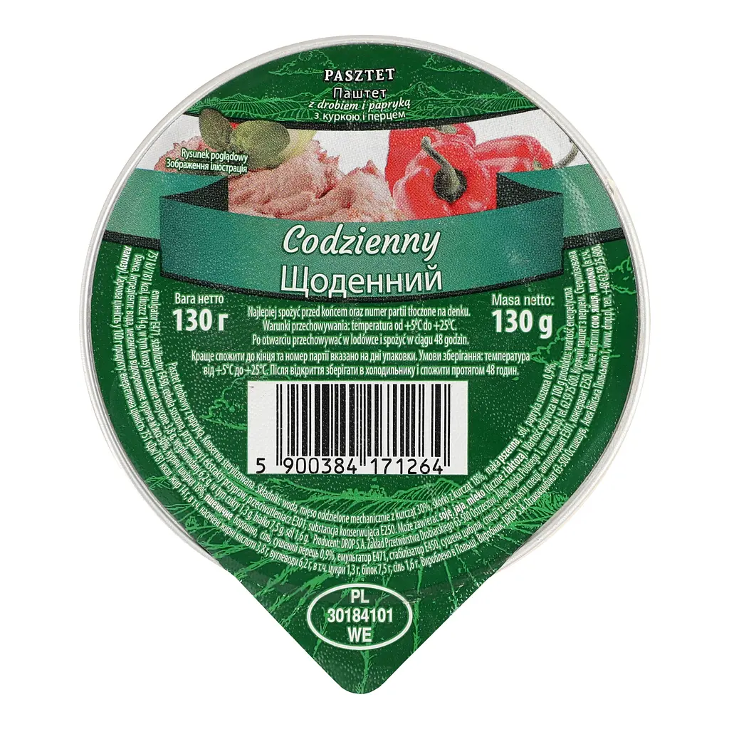 Паштет Drop Codzienny з куркою і перцем - відмінний продукт для швидкого перекусу на роботі або в дорозі.