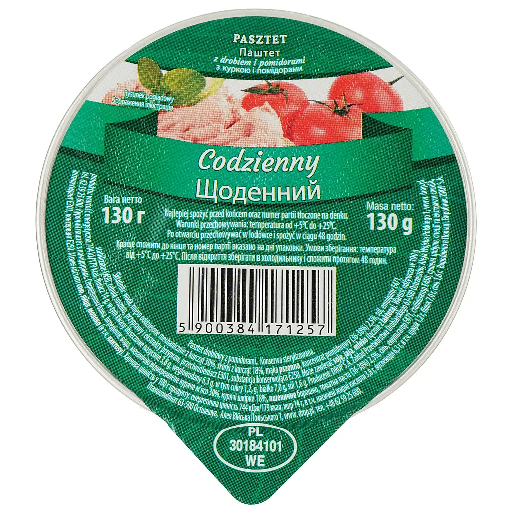 Паштет Drop Codzienny з куркою і помідорами - відмінний продукт для швидкого перекусу на роботі або в дорозі.