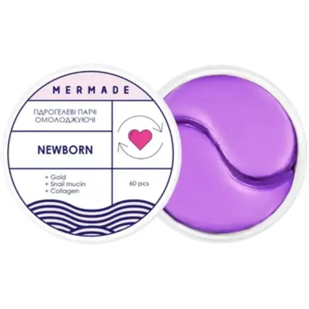 Гідрогелеві патчі Mermade Newborn розроблені для зменшення видимих ознак старіння та інтенсивного зволоження делікатної шкіри навколо очей. Їхня спеціальна формула містить висококонцентровані зволожуючі компоненти та поживні речовини, які допомагають покращити текстуру шкіри, надають їй пружності, а також роблять контури обличчя більш виразними. Патчі мають легку гелеву структуру, яка щільно прилягає до шкіри, забезпечуючи поступове вивільнення активних інгредієнтів для кращого ефекту.