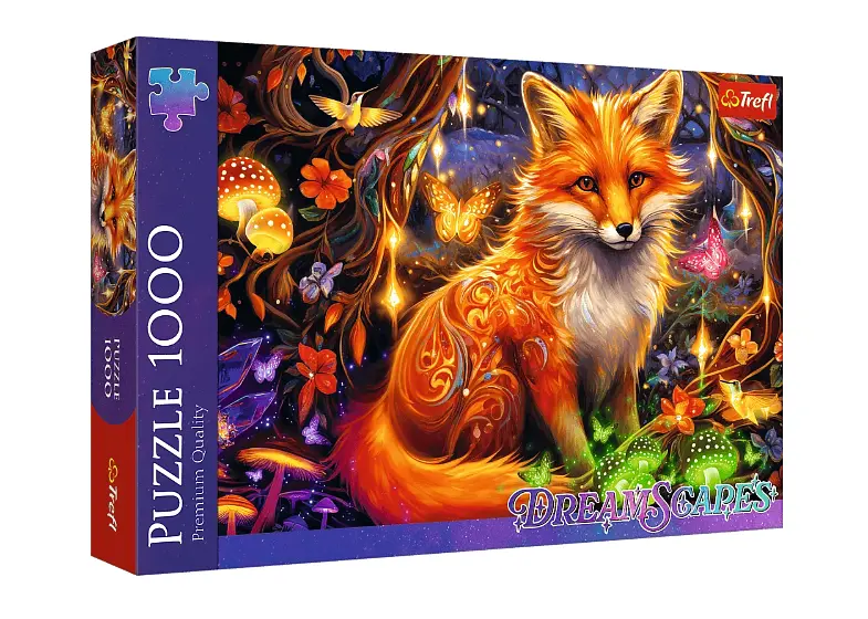 Відкривайте коробку та вирушайте в історичну подорож до загадкового лісу, де оживають дитячі сни! Пазли "Казковий лис" із нової серії DreamScapes запрошують вас у сюрреалістичний світ, сповнений інтенсивних кольорів та магії. На портреті зображений величний лис у оточенні мерехтливих метеликів, фантастичних грибів та магічних світних орнаментів. Цей набір стане ідеальним подарунком для тих, хто цінує фентезі та незвичайні художні образи, даруючи задоволення від збирання деталізованого та величного зображення лісового духа.