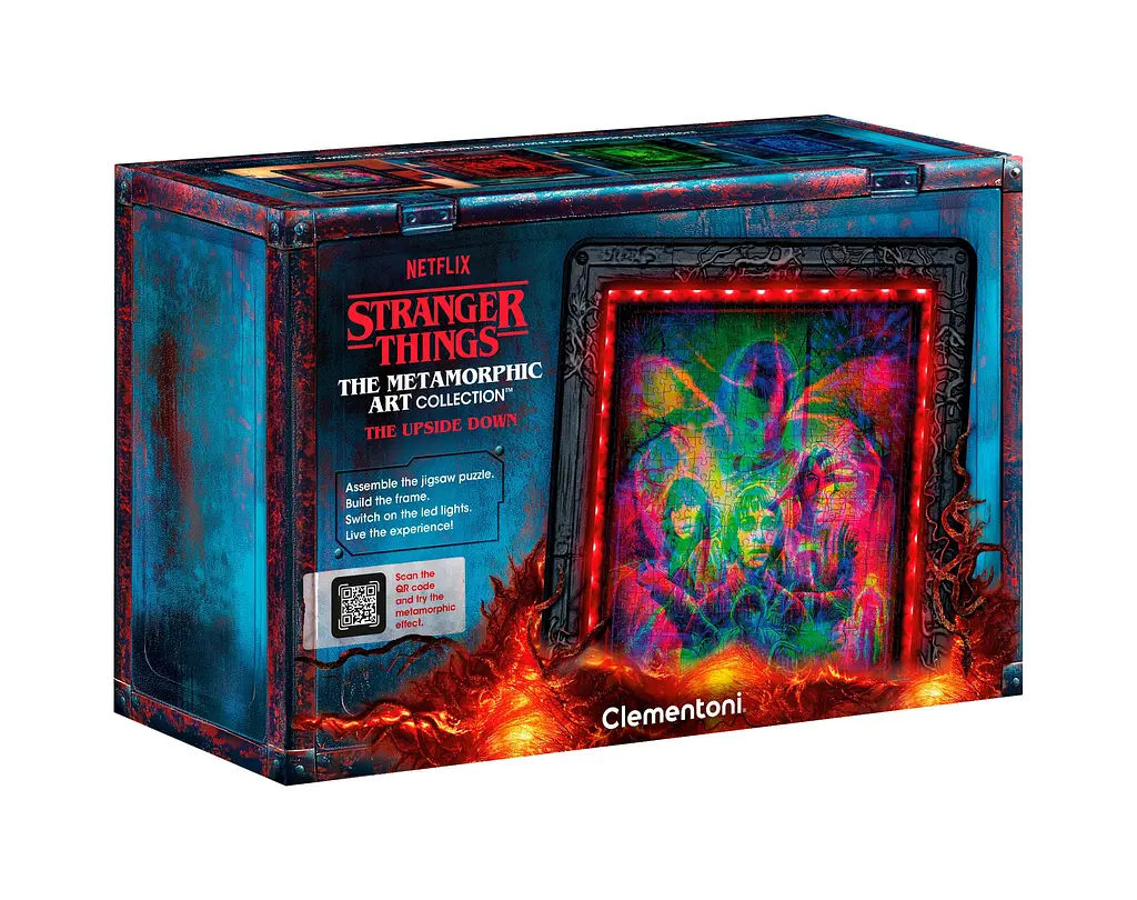 Пориньте у світ "Дивних див" із метаморфічним пазлом, який змінює зображення залежно від освітлення. У зібраному вигляді картина переходить у фантастичну послідовність із Одиннадцять, дітьми та Майндфлаєрами, що тероризують сім’ю Вілла. Після складання пазла та рамки вимкніть світло, увімкніть світлодіодну стрічку та спостерігайте, як картинка оживає новими кольорами. Завдяки трирівневому кольоровому ефекту зображення змінює вигляд при кожному режимі освітлення, створюючи унікальні враження. Набір розроблений і виготовлений в Італії з високою увагою до деталей.