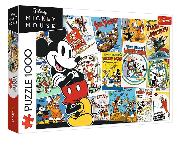 Відкривайте коробку та вирушайте в історичну подорож до золотого віку анімації! Пазли "У світі Міккі" на 1000 елементів — це ностальгічний колаж, що поєднує сцени з класичних ретро-мультфільмів Діснея. Цей набір стане ідеальним подарунком для колекціонерів та справжніх поціновувачів творчості Волта Діснея, даруючи задоволення від збирання деталізованого та величного зображення найвідомішого мишеняти у світі.