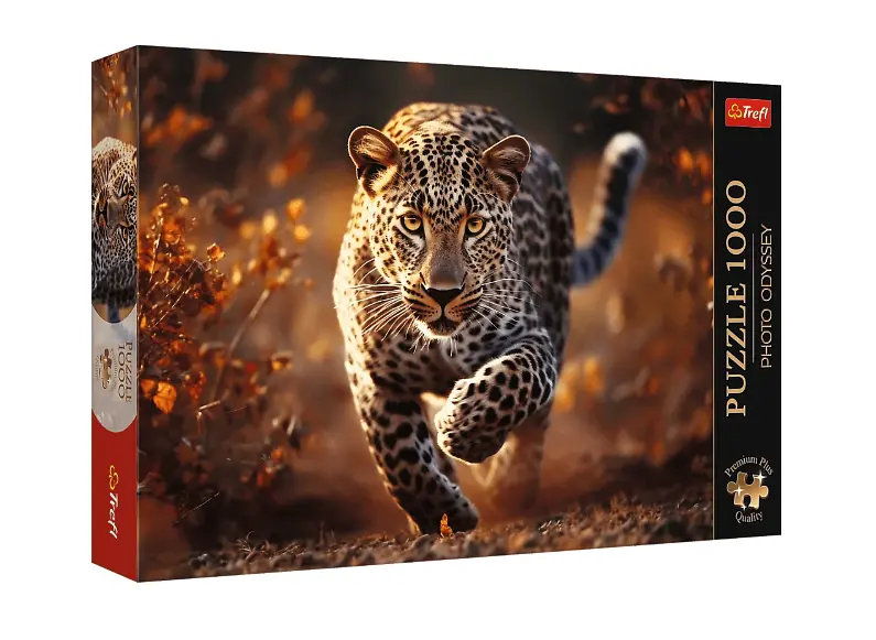 Відкривайте коробку та вирушайте в історичну подорож до неосяжних просторів дикої природи! Пазли "Дикий Леопард" із преміальної серії Premium Plus Quality захоплюють дух своєю динамікою. На високоякісній фотографії зафіксовано граціозного леопарда під час бігу, що дозволяє розгледіти кожну м’язову лінію та неповторний візерунок на його хутрі. Цей набір із серії Photo Odyssey стане ідеальним подарунком для поціновувачів диких тварин та динамічної фотографії, даруючи задоволення від збирання величного образу сили та швидкості.