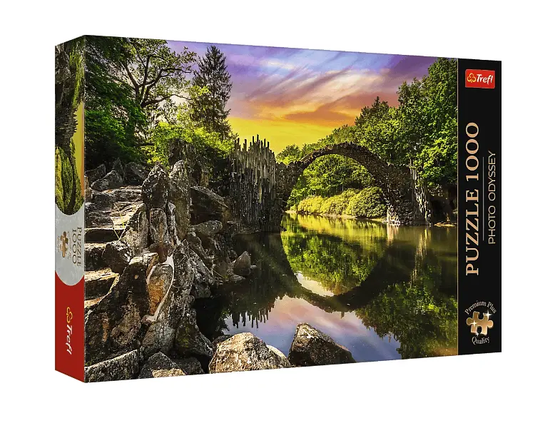 Відкривайте коробку та вирушайте в історичну подорож до містичного парку в самому серці Німеччини! Пазли "Міст Ракотц в Кромлау" із преміальної серії Premium Plus Quality — це справжня насолода для поціновувачів ідеальних форм. На зображенні представлений знаменитий кам'яний пішохідний міст, відомий як "Чортів міст", який завдяки своєму ідеальному відображенню у воді утворює повне магічне коло. Цей набір із серії Photo Odyssey стане ідеальним подарунком для любителів природи та архітектурних загадок, даруючи задоволення від збирання величного пейзажу, оточеного густим лісом.