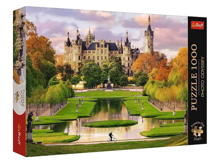 Відкривайте коробку та вирушайте в історичну подорож до одного з найвеличніших палацових комплексів Європи! Пазли "Шверінський замок, Німеччина" із преміальної серії Premium Plus Quality відкривають перед вами красу резиденції, яку часто називають "Північним Нойшванштайном". На зображенні представлений розкішний фасад замку, що нині слугує будівлею парламенту Мекленбурга-Передньої Померанії. Цей набір із серії Photo Odyssey стане ідеальним подарунком для поціновувачів витонченої архітектури, даруючи задоволення від збирання деталізованого та величного зображення замку, оточеного водою та садами.