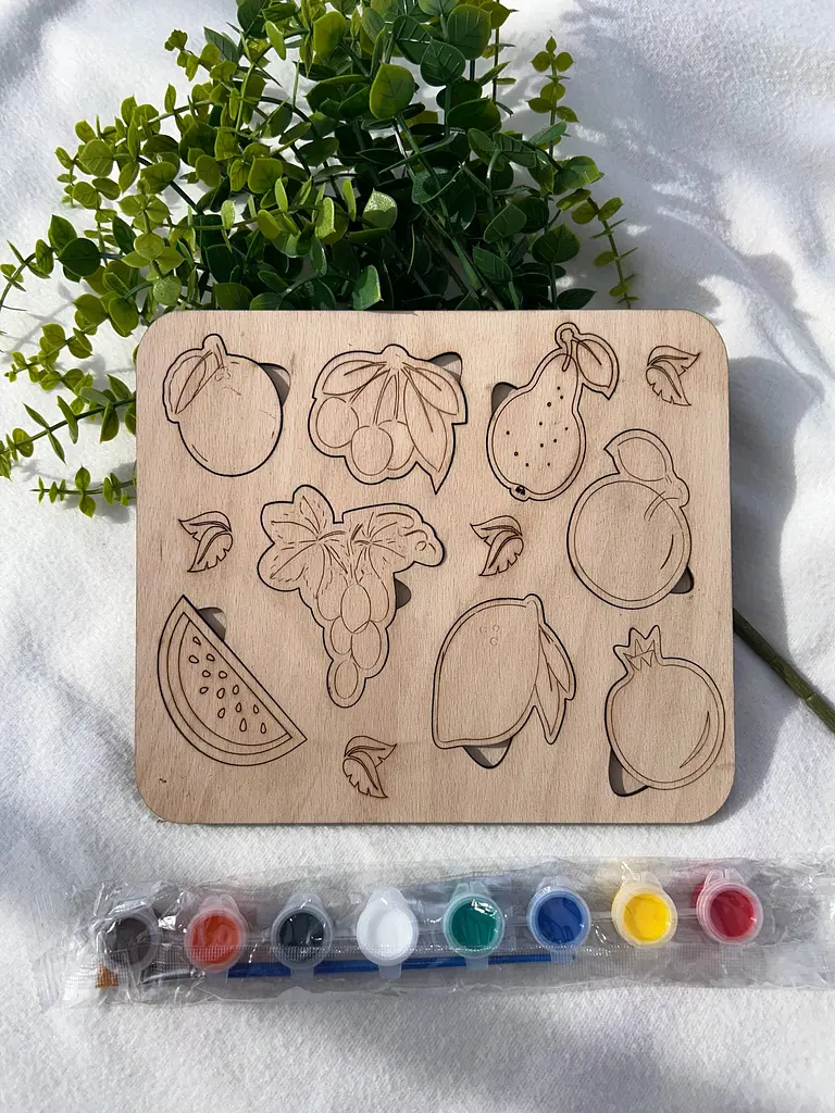 У наборі: дерев'яна основа, фігурки тварин, фарби та пензлик