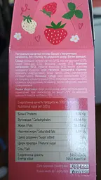Начинка, склад: натуральний мед (19%), сік полуниці концентрований (15%), полуниця заморожена (6%), крохмаль кукурудзяний, сік лимону, пектин яблучний, лецитин соняшниковий.