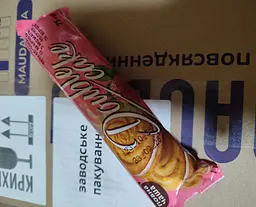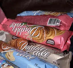 Варіант для тих ситуацій, коли в кишені лише дріб’язок, а душа вимагає солодкого бенкету. Воно нагадує такі собі «сендвічі»: дві хрусткі печенюшки, а між ними рожевий шар крему, який пахне полуницею так потужно, ніби ти на парфумерній фабриці, а не десь на кухні. Смак максимально зрозумілий – солодко, хрумко і під чай залітає як рідне. Звісно, до вишуканого кондитерського мистецтва тут далеко, і начинка на смак трохи «пластикова» та жирна, але за ці копійки це чесний продукт. Головне, не читати склад надто уважно, щоб не псувати собі настрій списком інгредієнтів, які допомагають йому зберігатися довше за єгипетські піраміди.