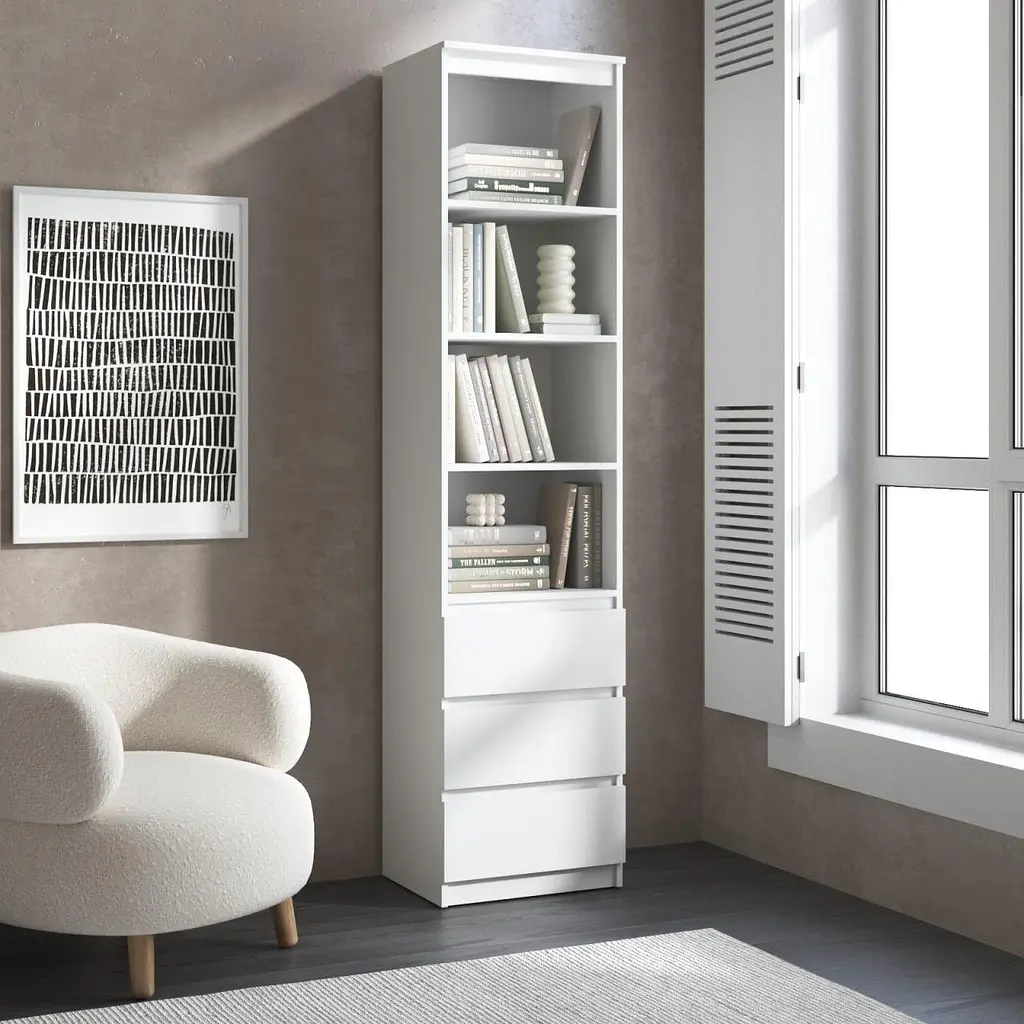 Пенал для книг Vays R-25 – стильний та функціональний меблевий елемент, який поєднує відкриті полиці та зручні шухляди без ручок. Виготовлений з якісного ЛДСП, він забезпечує довговічність та стійкість до щоденного використання. Розміри 50×40×211 см роблять його ідеальним вибором як для компактних кімнат, так і для просторих інтер’єрів. Лаконічний дизайн гармонійно впишеться у сучасний, мінімалістичний чи скандинавський стиль. Пенал підходить для зберігання книг, декору, документів та особистих речей, стане практичним доповненням у вітальні, спальні чи офісі.