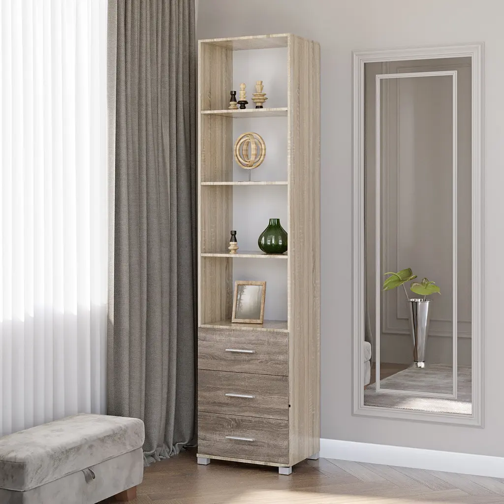 Відкритий пенал Бриз-16 меблевої компанії Еверест - це компактна модульна система без дверцят-фасаду, є частиною стильної та бюджетної колекції Бриз. Виконаний у простій та функціональній формі з надійного ЛДСП. Підійде для використання як у вітальні, так і дитячій, кабінеті або офісі. Також дана модель може послужити як стелаж для облаштування домашньої бібліотеки. Практична конструкція складається із двох частин. Верхня частина оснащена чотирма відкритими полицями. Внизу виробу є три висувні місткі ящики. Пенал виконаний із екологічно чистого ЛДСП (рівень емісії Е1) швейцарської компанії Kronospan, тому підійде навіть до дитячої кімнати. Габарити пеналу Бриз-16 Еверест (Ш х Г х В) 50 х 38 х 210 см