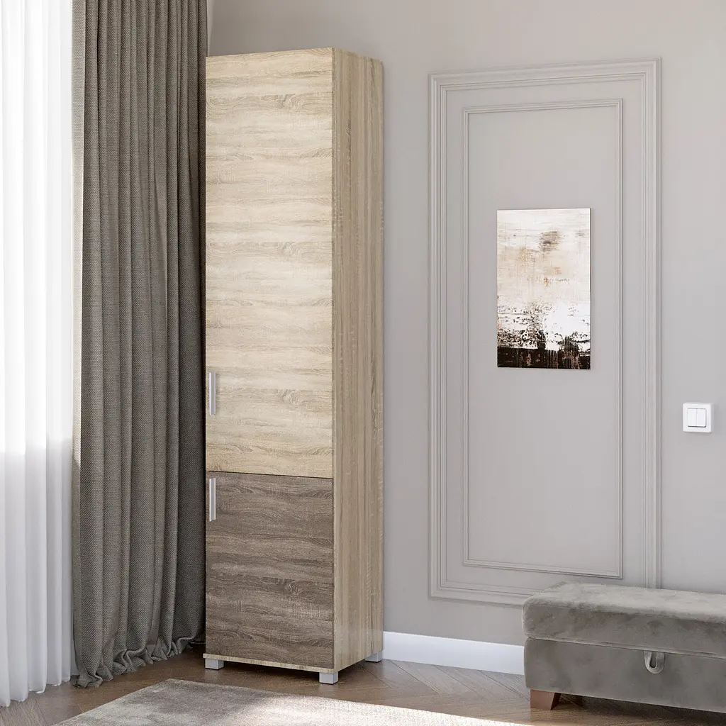 Пенал Бриз-15 меблевої фабрики Еверест – це практична модульна система із колекції Бриз. Виконані в стилі мінімалізм, є стильними і в той же час простими меблями для облаштування спальні, вітальні, передпокою і навіть офісного приміщення. Містка шафа пенал з двома дверима має п'ять внутрішніх полиць з однаковим розташуванням. Таке універсальне поєднання призначене для зберігання не лише одягу, а й для книг чи інших важливих речей. Пенал Бриз-15 підійде для сучасних людей, які цінують лаконічність та комфорт. Пенал виконаний із екологічно чистого ЛДСП (рівень емісії Е1) швейцарської компанії Kronospan, тому підійде навіть до дитячої кімнати. Габарити пеналу Бриз-15 Еверест (Ш х Г х В) 50 х 38 х 210 см