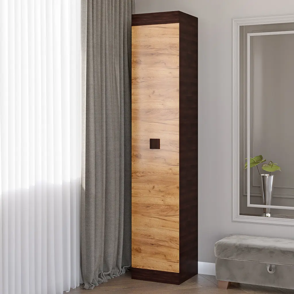 Закритий пенал з колекції Соната - прості лаконічні меблі для щоденного користування. Виготовляється українською меблевою компанією Еверест. Допоможе створити практичний та функціональний інтер'єр кімнати, що підходить для облаштування вітальні, спальні, передпокою, домашнього кабінету чи офісу. Зручна конструкція характеризується правильними геометричними формами, складається з п'яти однакових полиць, які можна розмістити багато важливих речей. Пенал виконаний із екологічно чистого ЛДСП (рівень емісії Е1) швейцарської компанії Kronospan, тому підійде навіть до дитячої кімнати. Габарити пеналу Еверест Соната (Ш х Г х В) 40 х 38 х 205 см