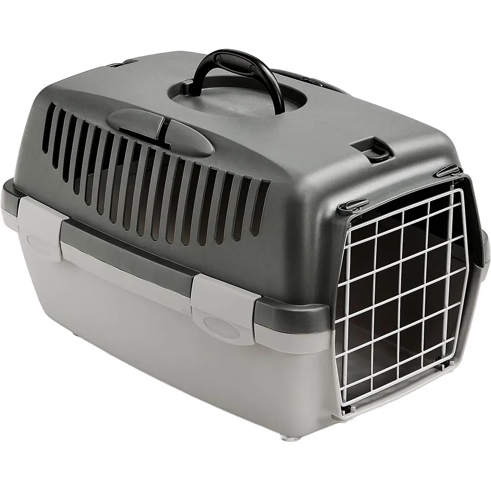 Міцна конструкція боксу виготовлена з високоякісного пластику, що гарантує довговічність і стійкість до пошкоджень. Переноска обладнана практичними металевими дверима. Для додаткової безпеки передбачено зовнішні затискачі, які надійно фіксують двері та запобігають їх випадковому відкриттю.