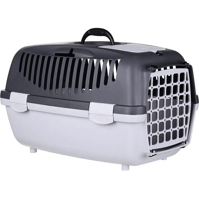 Міцна конструкція боксу виготовлена з високоякісного пластику, що гарантує довговічність і стійкість до пошкоджень. Переноска обладнана практичними пластиковими дверима. Для додаткової безпеки передбачено зовнішні затискачі, які надійно фіксують двері та запобігають їх випадковому відкриттю.