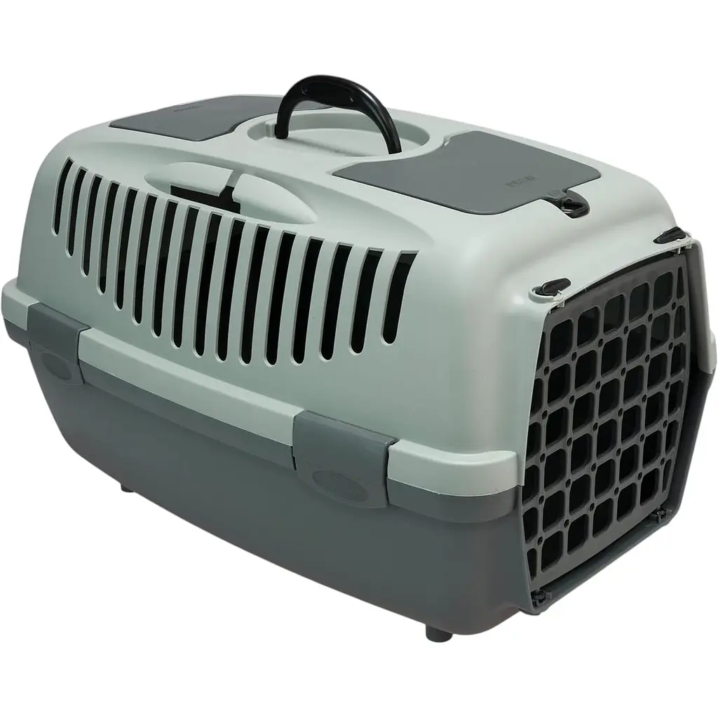 Міцна конструкція боксу виготовлена з високоякісного пластику, що гарантує довговічність і стійкість до пошкоджень. Переноска обладнана практичними пластиковими дверима. Для додаткової безпеки передбачено зовнішні затискачі, які надійно фіксують двері та запобігають їх випадковому відкриттю.