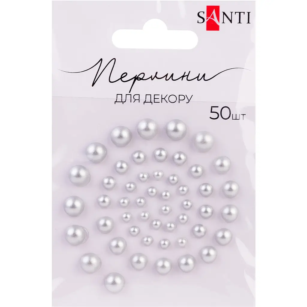 Перлини Santi самоклеючі - це витончений декоративний елемент, що дозволяє легко додати вашим виробам елегантності та чарівності. У наборі 50 перлин різного розміру, що забезпечує гнучкість у створенні композицій та надає виробам глибини й динаміки. Завдяки різноманітним діаметрам - 3 мм (20 шт.), 4 мм (10 шт.), 5 мм (10 шт.) і 6 мм (10 шт.) - ви зможете розставити акценти або оформити цілу декоративну поверхню з гармонійним розподілом деталей.