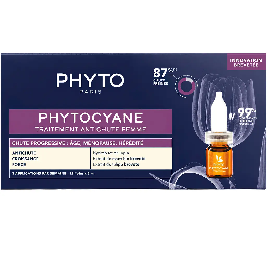 Стреси, агресії зовнішнього середовища, емоційний дисбаланс та незбалансовані дієти можуть призвести до реакційного випадання волосся. Phyto Phytocyane Traitement Antichute Femme забезпечує потрійну дію: уповільнює випадання, відновлює структуру і надає дію, що доглядає, для здоров'я і краси волосся.