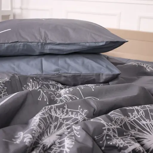 Дизайн комплекту в нейтральних тонах, що додає інтер'єру спальні сучасного вигляду. Завдяки високій якості фарбування, тканина зберігає насиченість кольорів навіть після численних прань. Комплект включає підковдру, простирадло та наволочки, що створює повноцінне рішення для оформлення спального місця.